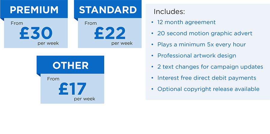 Our pricing structure differs depending on the network that your advert is shown in. Below are the pricing lists for each network.